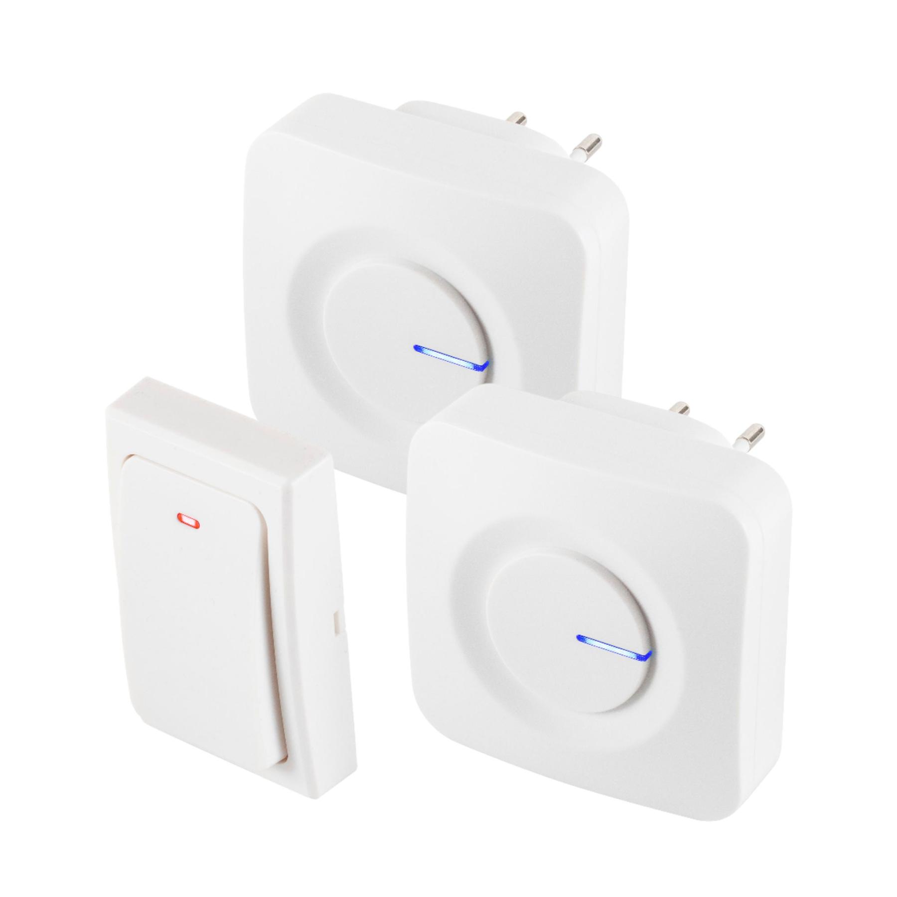- 1 nyomógomb + 2 csengő a csomagban, több helyiségben is hallható jelzéssel