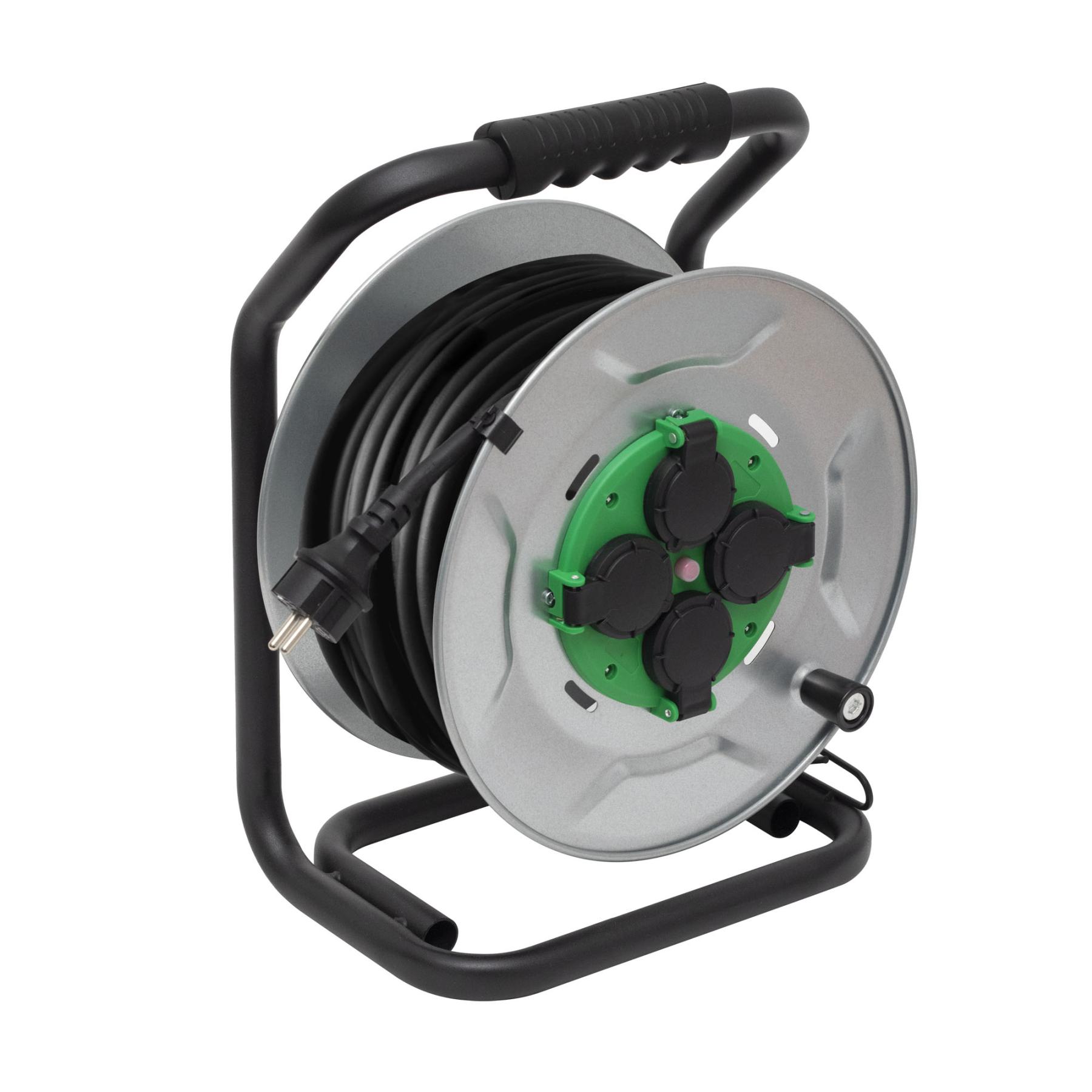 A HOME HJRM2025 fém kábeldob strapabíró és megbízható megoldást kínál mind otthoni, mind ipari környezetben. A 25 méter hosszú H07RN-F 3G2,5 mm² vezeték nagy teljesítményű eszközök ellátására is alkalmas, miközben a fém talp és fém kábeldob garantálja a stabilitást és a hosszú élettartamot.