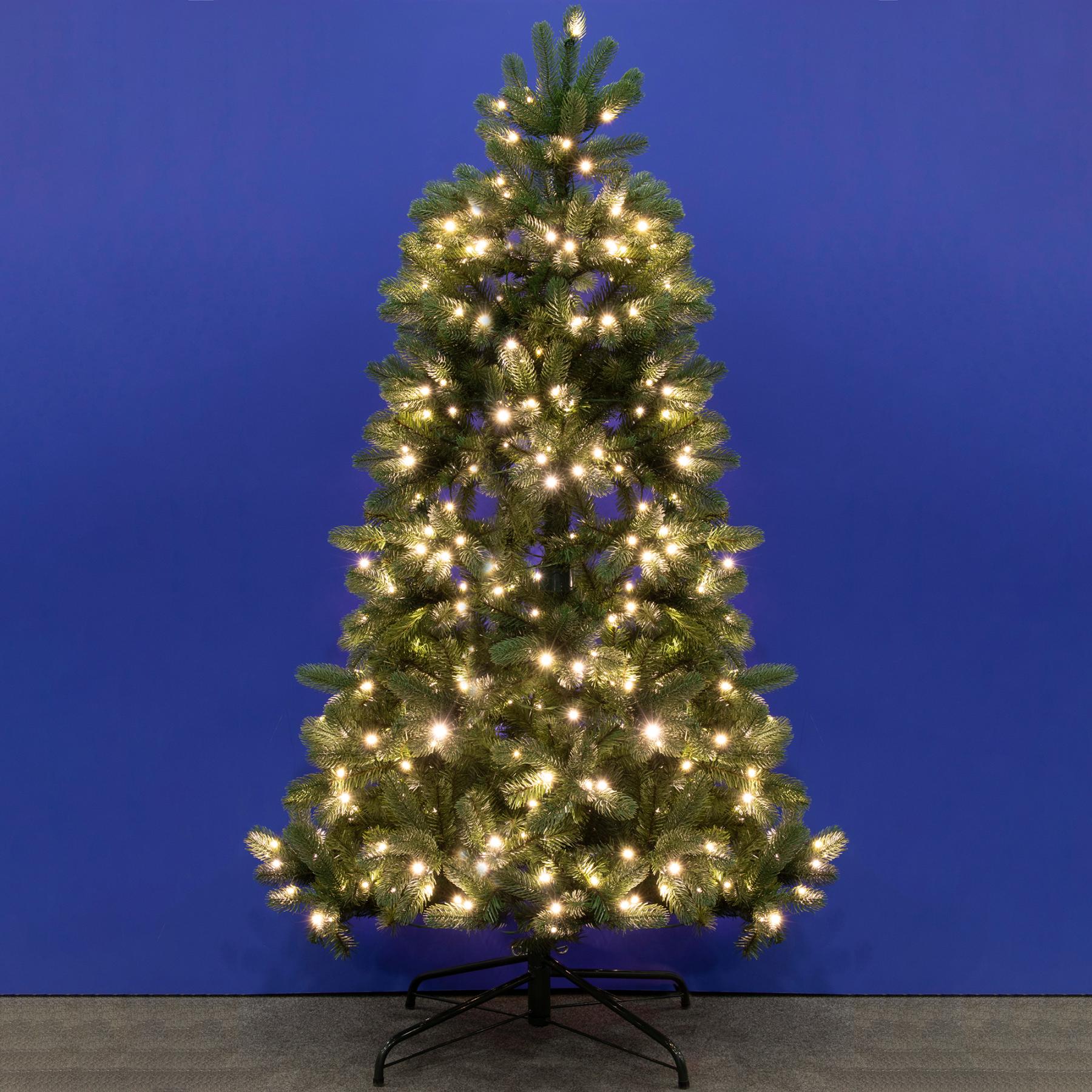 Ez a 180 cm magas, prémium minőségű műfenyő 350 db speciális, kétszínű LED-del van felszerelve, amelyek garantálják az ünnepi ragyogást, mind melegfehér, mind pedig színes fényben. A különleges talpkapcsoló segítségével négyféle funkció közül választhat: választhatja a melegfehér állófényű megvilágítást, a színes állófényű változatot, a felváltva melegfehér és színes fényt, vagy akár teljesen ki is kapcsolhatja a világítást. Ez a sokoldalúság lehetővé teszi, hogy a fa minden alkalomhoz és hangulathoz alkalmazkodjon.