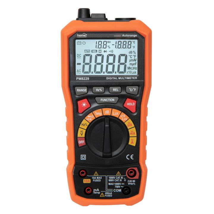 A HOME SMA 8229 digitális multiméter egy professzionális, többfunkciós mérőeszköz, amely ideális választás mind a szakemberek, mind a precizitásra törekvő felhasználók számára. Kiemelkedő pontossággal méri az egyen- és váltófeszültséget, áramerősséget, ellenállást, kapacitást, frekvenciát, hőmérsékletet, páratartalmat, hangnyomást és fényerőt, így valódi univerzális mérőműszerként segíti a munkát a műhelyben, az építkezésen vagy akár otthoni felhasználás során is.