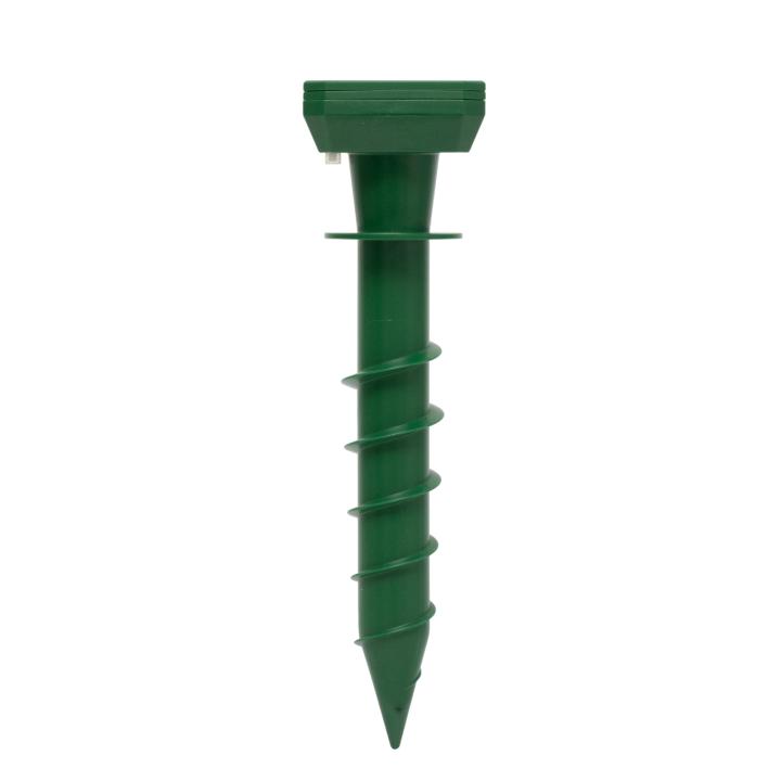 A 200 mm hosszú csavarmenetes szárnak köszönhetően a karó könnyedén a földbe csavarható, biztos tartást nyújtva különböző talajtípusokban is. A stabil elhelyezés segíti a rezgések egyenletes terjedését, így a riasztás hatékonysága maximális marad.